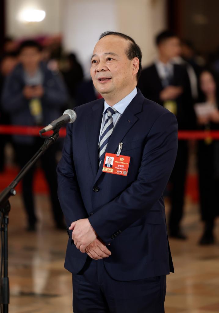 3月4日,全國(guó)政協(xié)十四屆四次會(huì)議首場(chǎng)“委員通道”集體采訪活動(dòng)在北京人民大會(huì)堂舉行。這是全國(guó)政協(xié)委員王勇峰接受媒體采訪。新華社記者 曹祎銘 攝