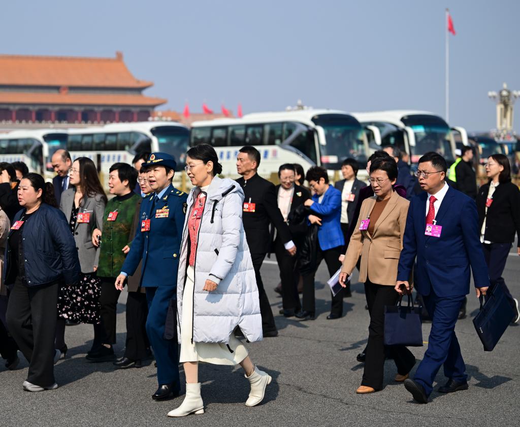 3月8日,全國(guó)政協(xié)十四屆四次會(huì)議在北京人民大會(huì)堂舉行第三次全體會(huì)議。這是全國(guó)政協(xié)委員走向會(huì)場(chǎng)。新華社記者 金良快 攝