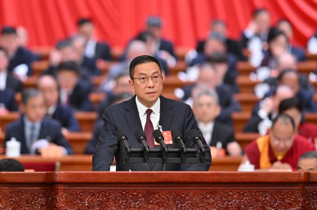 3月8日,全國政協(xié)十四屆四次會(huì)議在北京人民大會(huì)堂舉行第三次全體會(huì)議。這是楊明杰委員作題為《穩(wěn)步推進(jìn)落實(shí)四大全球倡議 推動(dòng)構(gòu)建人類命運(yùn)共同體》的發(fā)言。新華社記者 岳月偉 攝